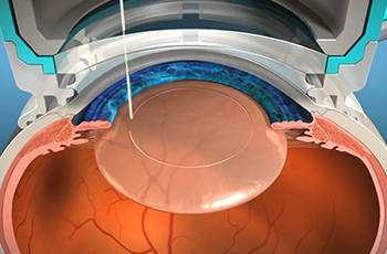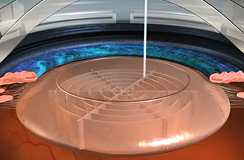 Máy laser LenSx tạo một vết rạch hình tròn (cắt bao trước) ở phía trước bao trước của thủy tinh thể