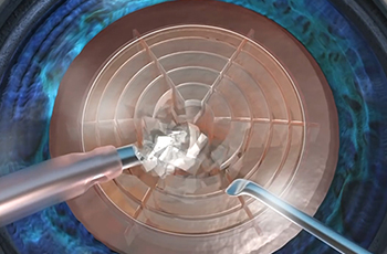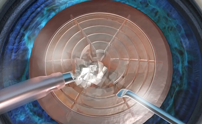 Máy laser LenSx sẽ phân chia thủy tinh thể đục thành những mảnh nhỏ.